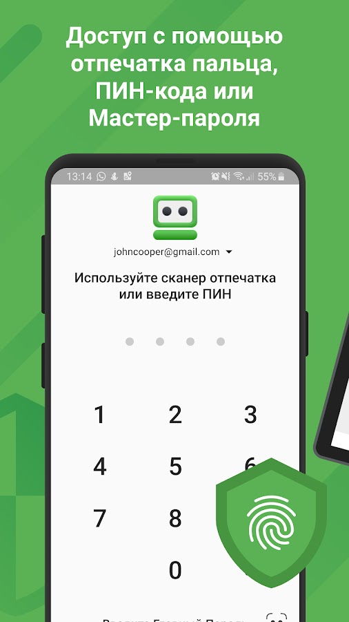 • Приложение блокируется при неактивности. Никто не сможет воспользоваться вашими данными, даже если вы потеряете свое устройство.