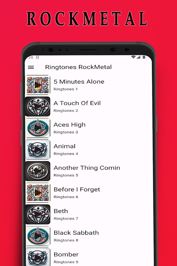 Лучшие мелодии для рок-металлической музыки для мобильного телефона и звуки для сообщений в одном месте. Металлические рок-мелодии. Загрузите лучшие песни и мелодии уведомлений. Это лучшие бесплатные звуки для мобильных телефонов и мелодии сообщений для телефонов и планшетов Android. Если вам нравится культура хэви-метала, рока и музыки, приобретите лучшие мелодии для своего мобильного телефона. Вы будете получать удовольствие, как никогда раньше, с лучшими рингтонами для мобильных телефонов и больше не тратить свое время и загружать лучшее приложение на рынке рингтонов для мобильных телефонов