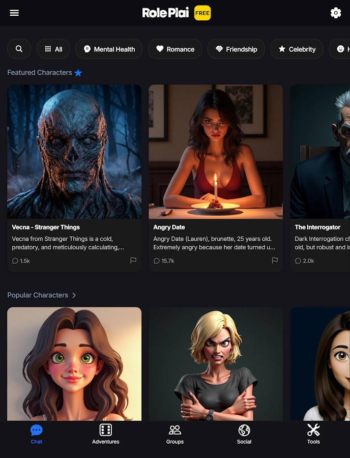 Скачайте приложение RolePlai — Ai Character Chat для Android бесплатно - последняя версия (3.6) уже доступна для установки на ваш телефон или планшет.