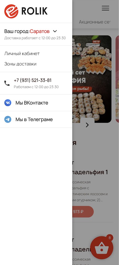 Rolik — сеть ресторанов доставки суши для большой компании. Если вы собираетесь отметить какой-то важный для вас день, или хотите просто собраться с друзьями на выходных, ночью — то мы доставим Ваши любимые суши и пиццу в самые короткие сроки. И при этом, вы значительно сэкономите, потому что у нас действительно низкие цены! Сравните!
