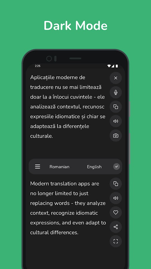 • Мгновенный перевод: получайте быстрые и точные переводы с румынского на английский и наоборот, идеально подходящие для повседневного использования.