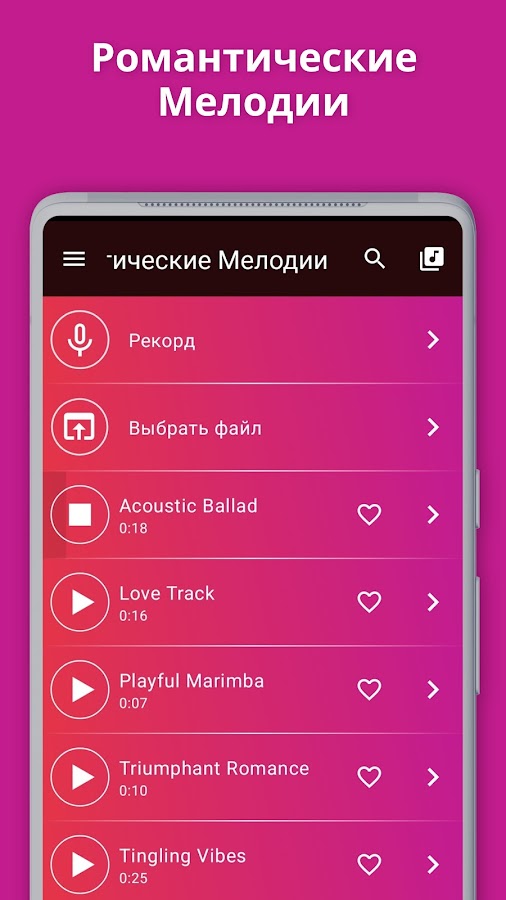 Скачать Романтические Мелодии на Звонок приложение Андроид теперь; пусть ваш рингтон Андроид рассказать всем что вы нашли настоящая любовь!