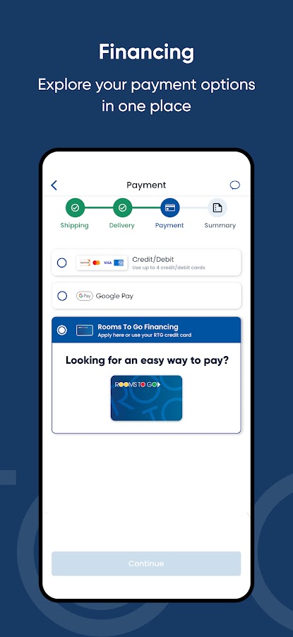 Rooms To Go упрощает оформление, а теперь приложение делает это еще проще! Загрузите сейчас, чтобы делать покупки и экономить с нашим невероятным выбором мебели и домашнего декора.