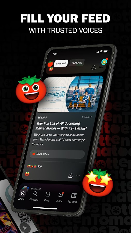 • Просматривать оценки Tomatometer и Popcornmeter, чтобы знать, является ли что-то свежим, гнилым, горячим или устаревшим. • Оставляйте отзывы и оценки, чтобы ваш голос был услышан.