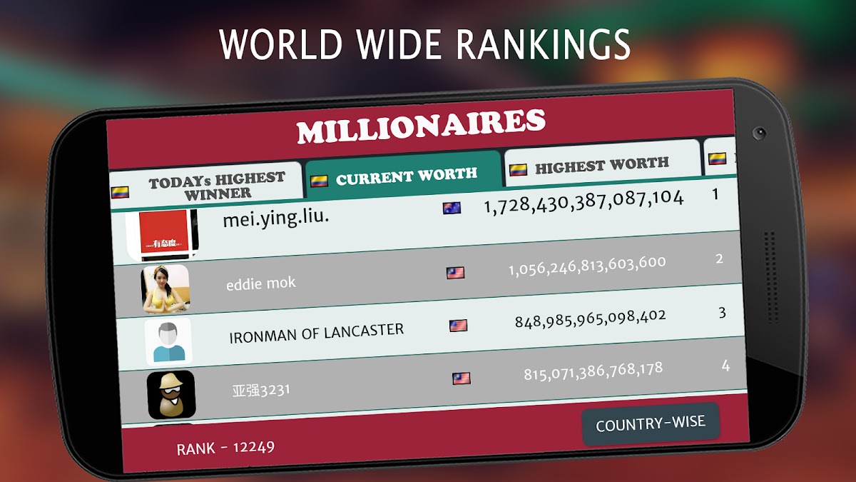 • Таблица лидеров для сравнения с друзьями и просмотра рейтингов виртуальных денег и предметов по всему миру и странам.