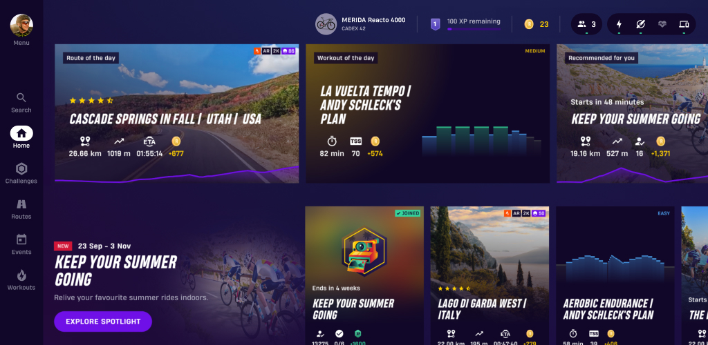 Исследуйте постоянно расширяющуюся библиотеку виртуальных велопоездок в дополненной реальности, благодаря чему каждая езда на велосипеде в помещении станет настоящим приключением на свежем воздухе. Собираетесь ли вы на знаменитые подъемы, исследуете оживленные города или наслаждаетесь экзотическими прибрежными пейзажами, велосипедное приложение ROUVY предлагает что-то необычное для каждой поездки.