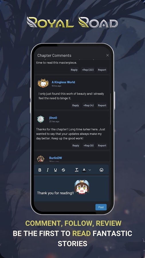 Скачайте приложение Royal Road — Read Stories для Android бесплатно - последняя версия (2.30.1036) уже доступна для установки на ваш телефон или планшет.