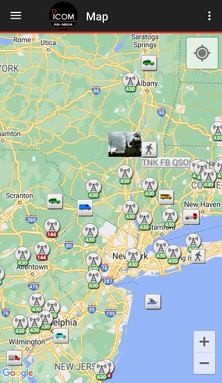 Просматривайте местоположение ретрансляторов или других станций на карте, используя полученные данные о местоположении или список ретрансляторов вашего трансивера.
