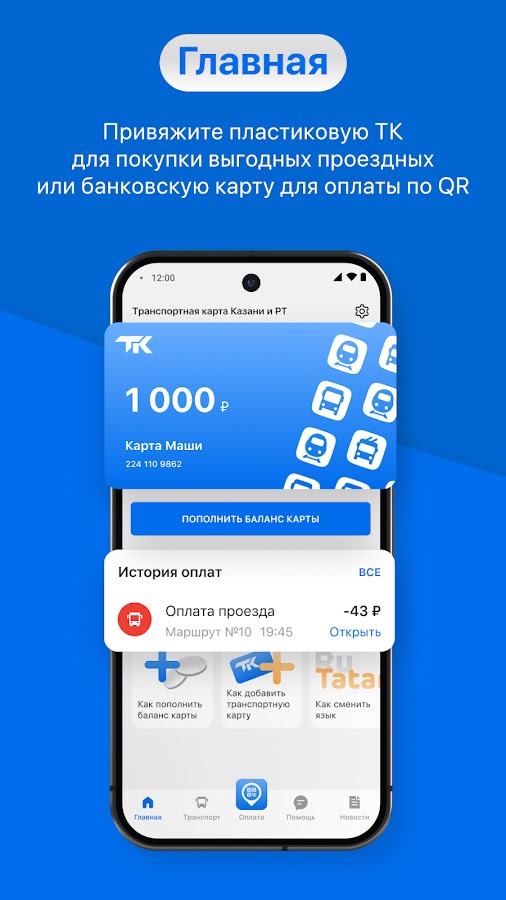 Транспортная карта Казани и РТ – мобильное приложение для оплаты проезда и контроля баланса транспортной карты в Казани и Республике Татарстан.