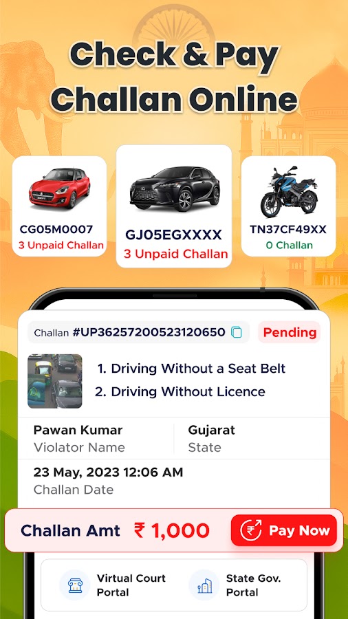 Больше никогда не пропускайте платежи по квитанциям! Проверьте статус штрафа за нарушение правил дорожного движения и данные о регистрации транспортного средства в RTO с помощью Vehicleinfo. Введите номер вашего RC или используйте наш номерной знак для получения информации о электронном штрафе. Держите свои штрафы за нарушение правил дорожного движения под контролем!