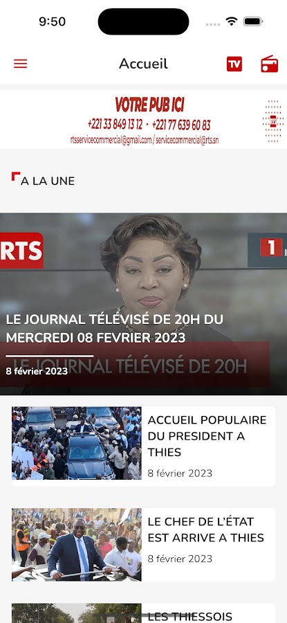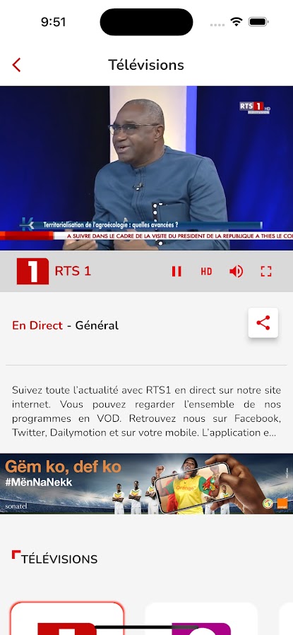 Телевизионное вещание Сенегала предлагает свои программы на ваших Android устройств.