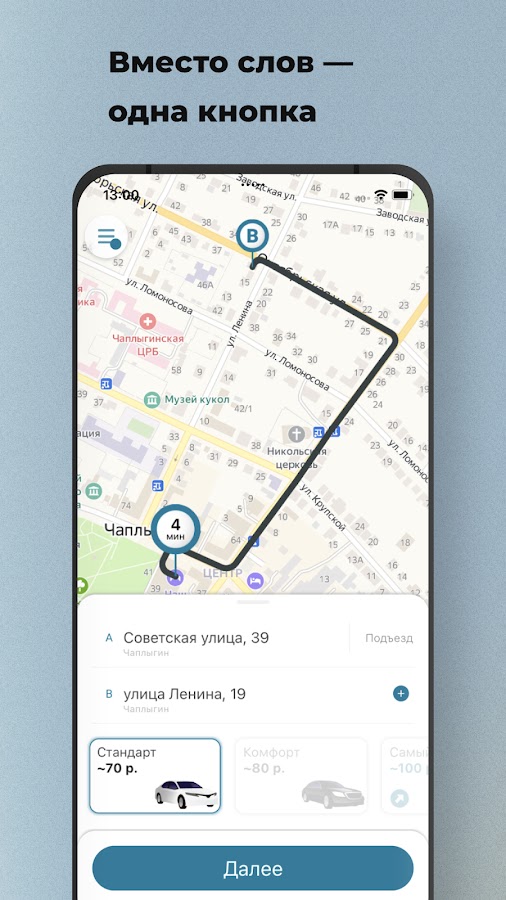 Заказывайте Рубин-М в городе Чаплыгин через приложение. Это в 3 раза быстрее, чем по телефону! Между желанием доехать до нужного места и поиском автомобиля — пара секунд.