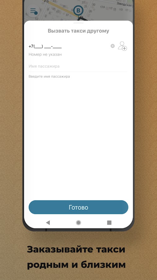 Используйте опцию “Вызвать такси другому” в разделе “Пожелания” и укажите его номер телефона. Когда такси подъедет, на указанный номер придет СМС, а вам — сообщение в приложении.