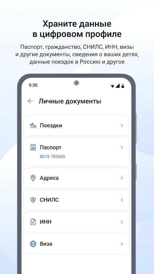• Просмотр данных цифрового профиля.