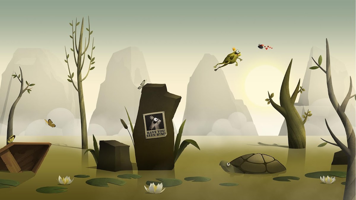 Жила-была принцесса в высоком замке, которая перецеловала много лягушек, чтобы найти принца свой мечты. Но лягушка просто хотела быть лягушкой, а не жить в замке (несмотря на его высоту). Итак, лягушка нашла выход: УБЕЖАТЬ! В любую погоду, днем и ночью, лягушка в бегах. Берегись дирижаблей, сов и других опасностей в то время, как ты ешь насекомых, получаешь новые бонусы, исследуешь болото и ищешь секреты.