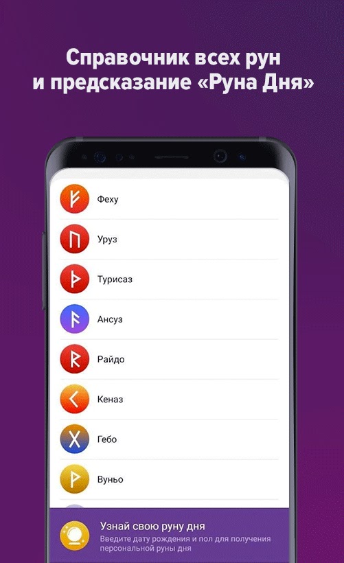 Гадания с помощью этих символов используются еще со времен викингов. В нашем приложении мы сделали самое простое и правдивое гадание — Руна дня. Оно позволит вам каждое утро получить подсказку на день, чтобы прожить его максимально эффективно.