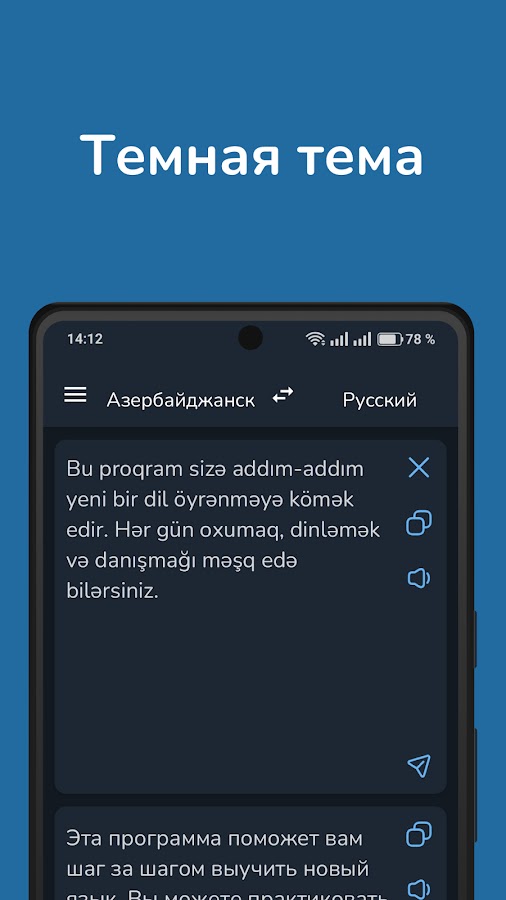 Русско-азербайджанский переводчик – быстрый, приватный, офлайн. Теперь с темным режимом!