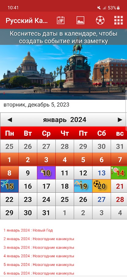 Скачайте приложение Рyссии Календарь 2025 для Android бесплатно - последняя версия (3.0.5) уже доступна для установки на ваш телефон или планшет.