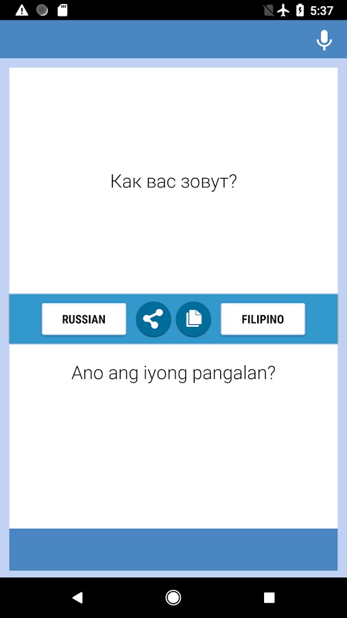 Русско-Филиппинский переводчик — бесплатный и простой в использовании. Вы можете переводить тексты и письма с Русского на Филиппинский и с Филиппинский на Русский. Приложение удобно использовать для международного общения в чатах, мессенджерах и социальных сетях. Вы можете использовать переводчик на работе, в учебе, для знакомств, во время поездок или командировок, чтобы улучшить свои языковые навыки, также вы можете использовать приложение как Русско-Филиппинский и Филиппинский-Русский словарь. Загрузите наш онлайн переводчик и начните совершенствовать свои языковые навыки прямо сейчас!