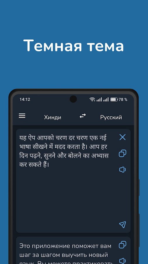 Переводчик с русского на хинди – быстро, приватно, офлайн. Теперь с темным режимом!