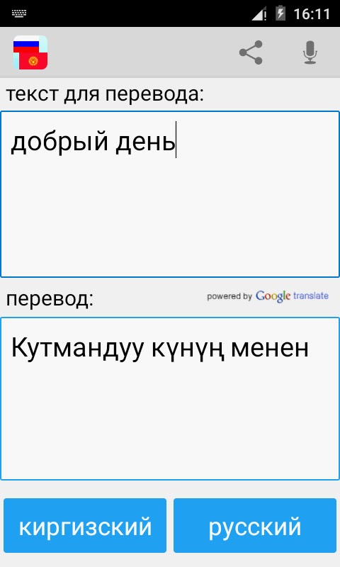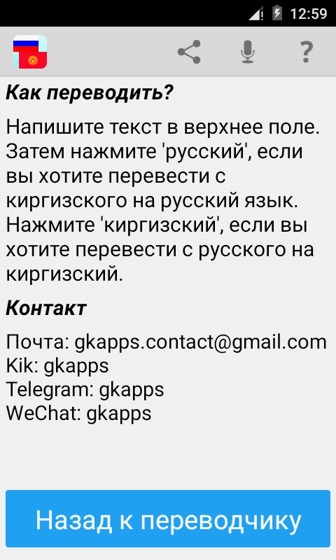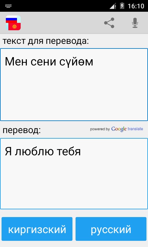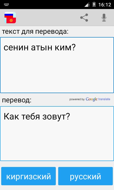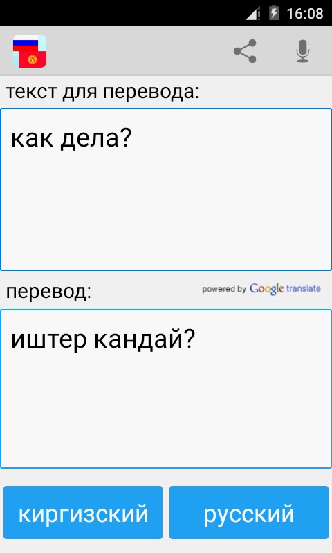 С этим приложением вы можете тексты, слова и фразы из русского языка на киргизский, и из киргизского языка на русский переводить.