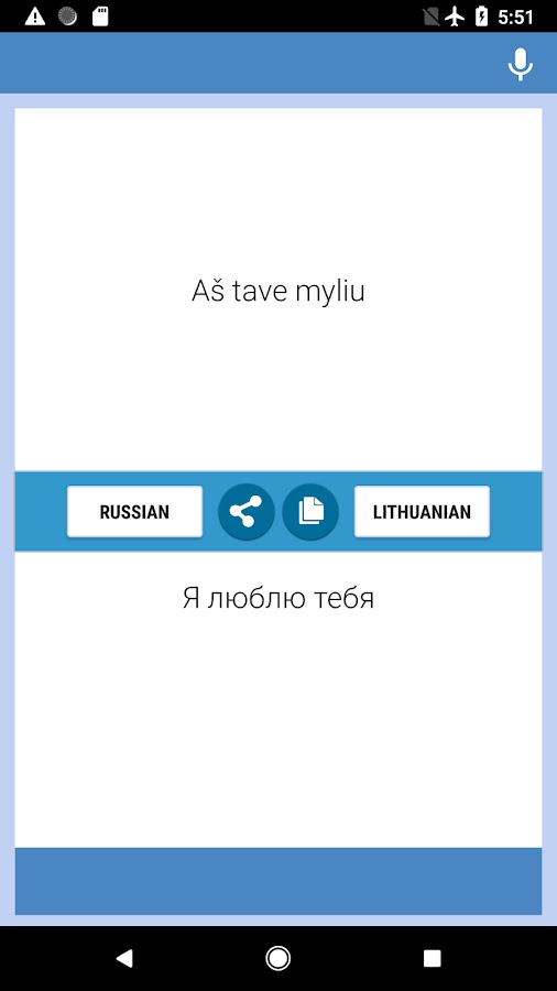 Русско-Литовский переводчик — бесплатный и простой в использовании. Вы можете переводить тексты и письма с Русского на Литовский и с Литовский на Русский. Приложение удобно использовать для международного общения в чатах, мессенджерах и социальных сетях. Вы можете использовать переводчик на работе, в учебе, для знакомств, во время поездок или командировок, чтобы улучшить свои языковые навыки, также вы можете использовать приложение как Русско-Литовский и Литовский-Русский словарь. Загрузите наш онлайн переводчик и начните совершенствовать свои языковые навыки прямо сейчас!
