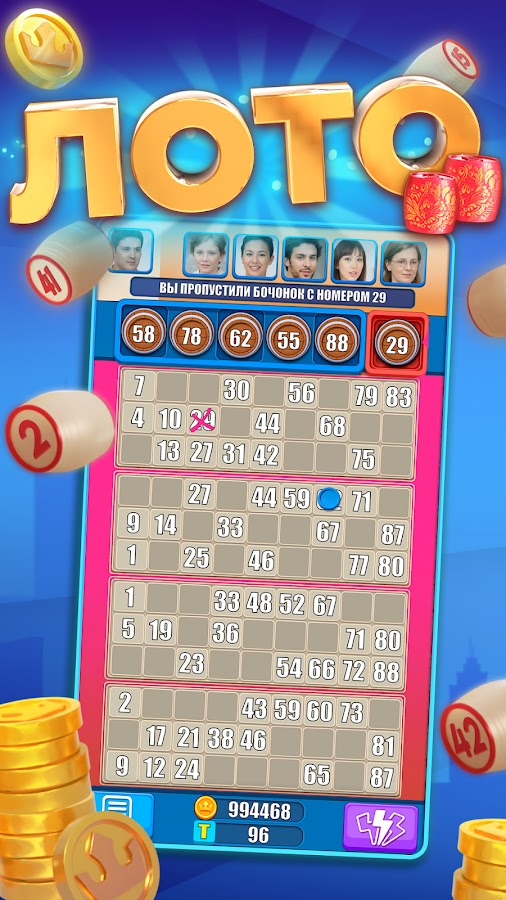 Лото — это классика. В детстве у каждого из нас был период, когда мы научились играть в лото, полюбили его и сохранили его в своем сердце на всю жизнь. Настоящие фанаты лото до сих пор не пропускают ни одного тиража Русского Лото, Золотой Подковы, Блиц-игры. Теперь у вас есть возможность играть в русское лотто в любой момент прямо на своем мобильном устройстве. Обещаем аутентичную атмосферу с любимыми классическими заводилками “Гуси-Лебеди”, “Барабанные палочки”, “Туда-сюда”, и море удовольствия.
