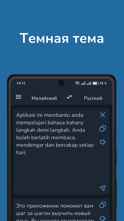 Русско-малайский переводчик – быстрый, приватный, офлайн. Теперь с темным режимом!