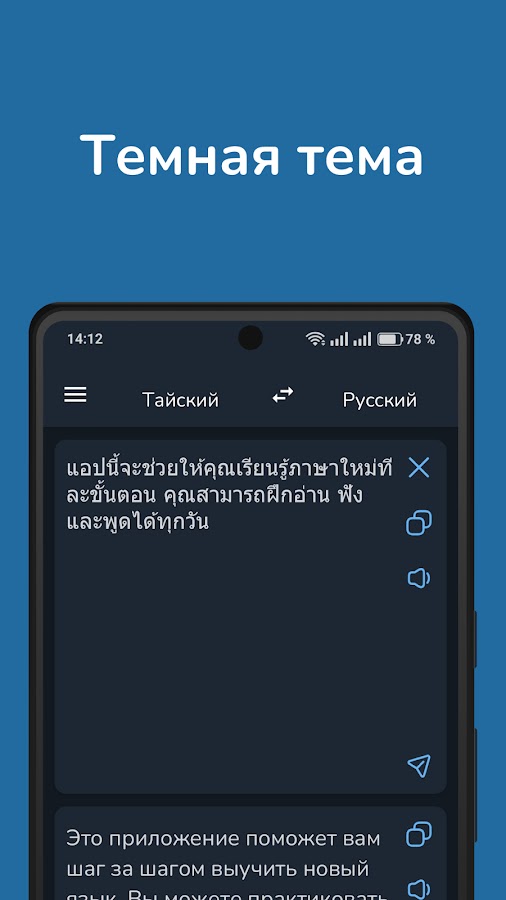 Русско-тайский переводчик – быстрый, приватный, офлайн. Теперь с темным режимом!