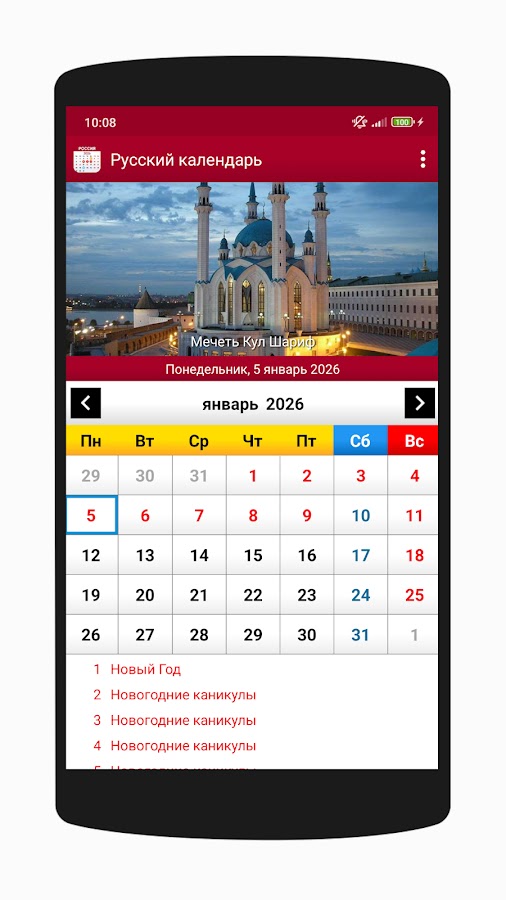 Скачайте приложение Русский календарь 2026 для Android бесплатно - последняя версия (1.1.20) уже доступна для установки на ваш телефон или планшет.
