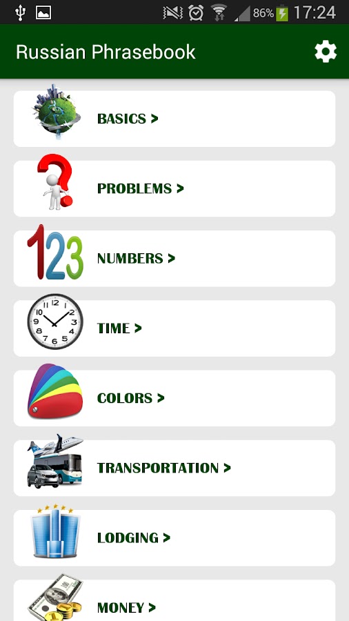 Очень полезно русский разговорник, когда вы идете в России, Украине, Казахстане, Беларуси или любой другой русскоговорящим стране! Этот разговорник содержит предложения из разных категорий, например: