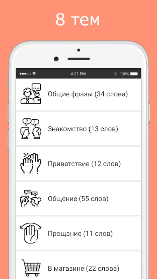 Для изучения, в разговорнике представлены следующие темы: