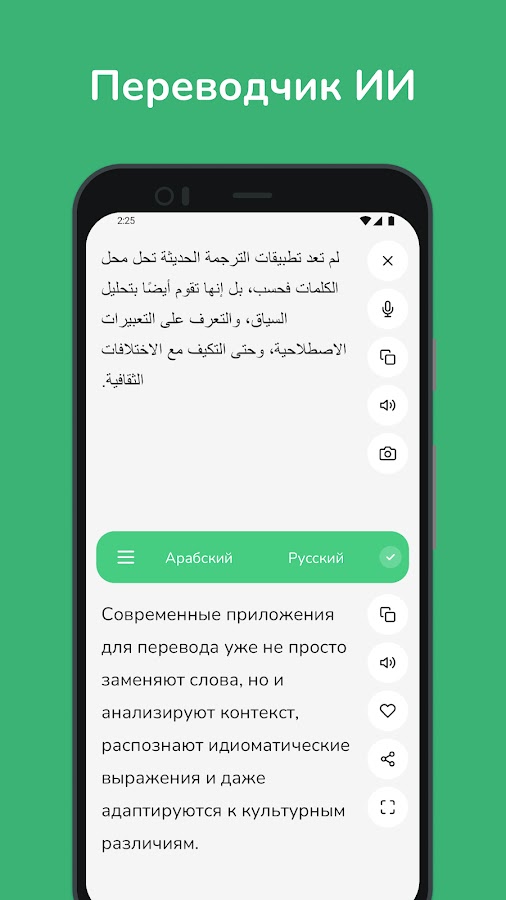 Раскройте силу языка с помощью нашего современного арабско-русского и русско-арабского переводчика! Независимо от того, являетесь ли вы студентом, путешественником или профессионалом, этот переводчик на базе искусственного интеллекта создан для того, чтобы сделать общение простым и удобным.