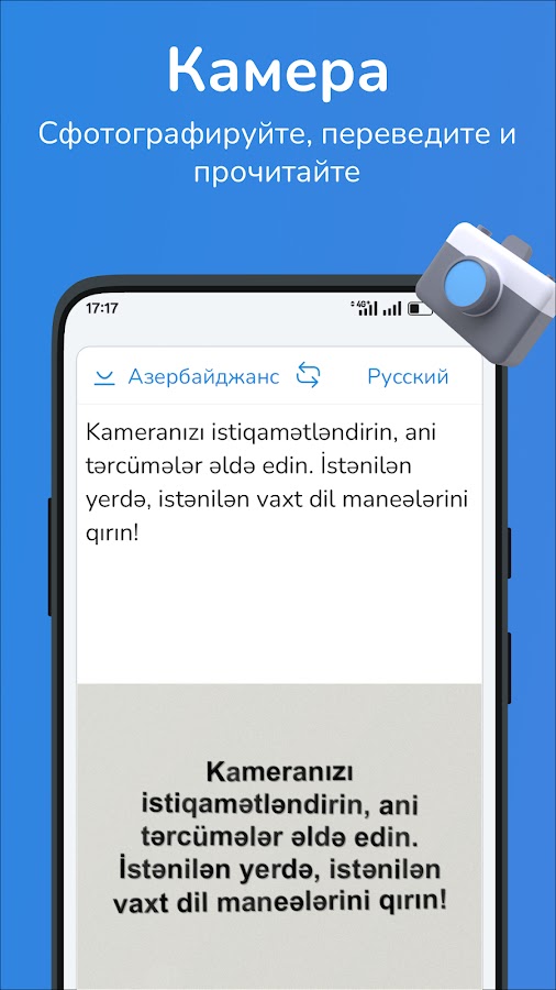 — Перевод изображений: захват и перевод текста с фотографий, знаков и документов с помощью азербайджано-русского переводчика.