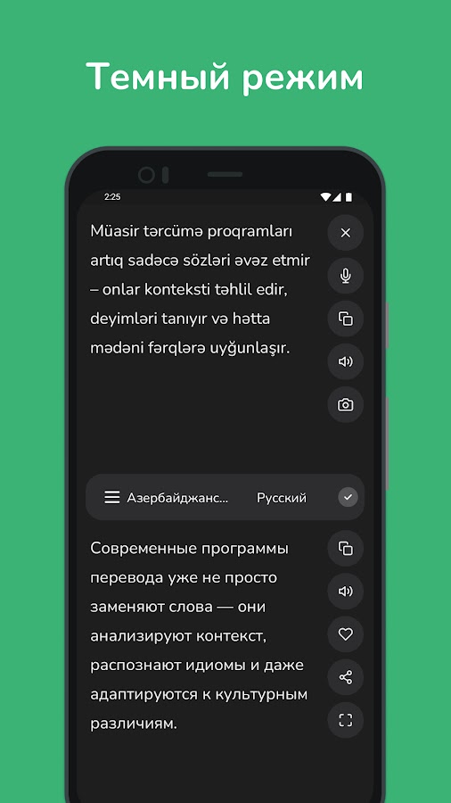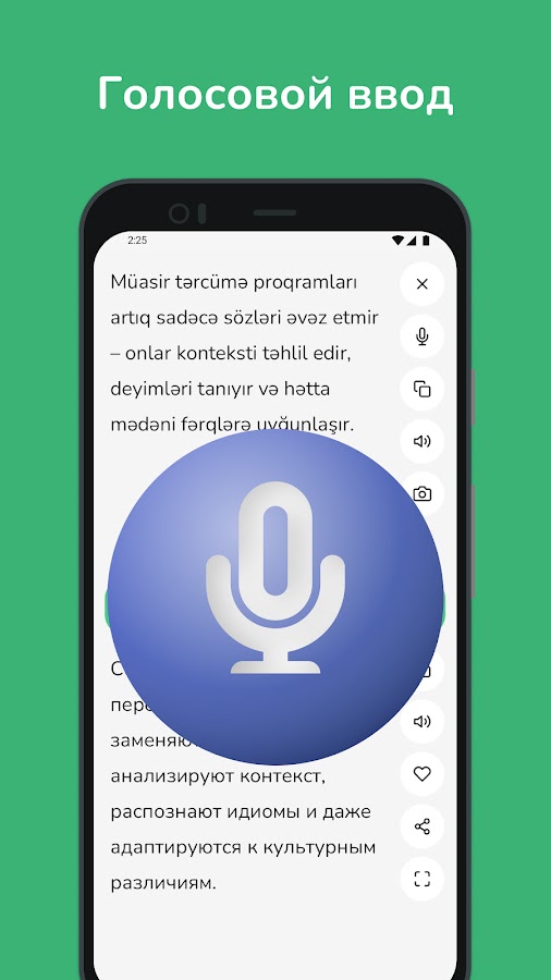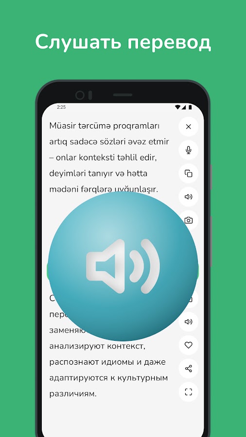 • Мгновенный перевод: получайте быстрые и точные переводы с азербайджанского на русский и наоборот, идеально подходящие для повседневного использования.
