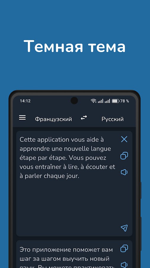 Русско-французский переводчик – быстрый, приватный, офлайн. Теперь с темным режимом!