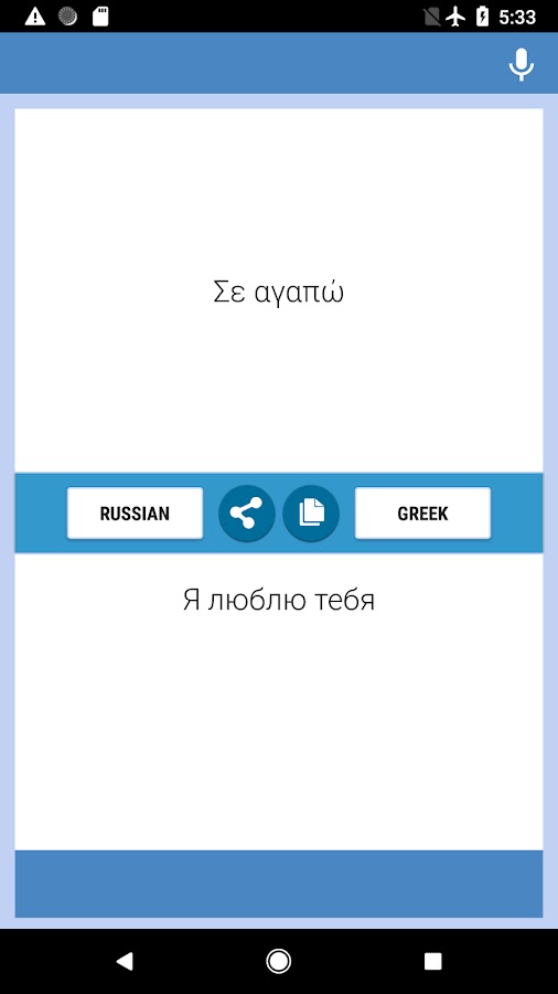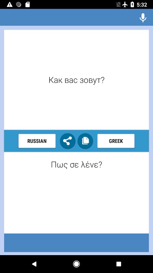 Русско-Греческий переводчик — бесплатный и простой в использовании. Вы можете переводить тексты и письма с Русского на Греческий и с Греческий на Русский. Приложение удобно использовать для международного общения в чатах, мессенджерах и социальных сетях. Вы можете использовать переводчик на работе, в учебе, для знакомств, во время поездок или командировок, чтобы улучшить свои языковые навыки, также вы можете использовать приложение как Русско-Греческий и Греческий-Русский словарь. Загрузите наш онлайн переводчик и начните совершенствовать свои языковые навыки прямо сейчас!