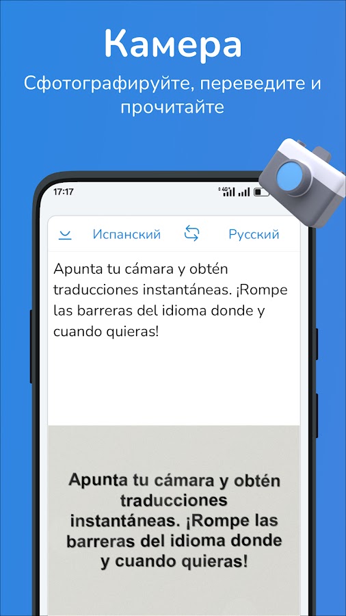 — Перевод изображений: захват и перевод текста с фотографий, знаков и документов с помощью испанско-русского переводчика.
