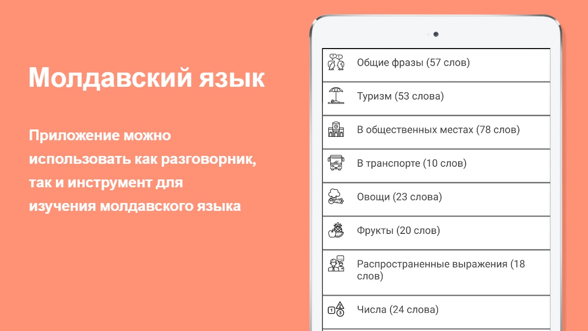 Скачайте приложение Русско-молдавский разговорник для Android бесплатно - последняя версия (8.0) уже доступна для установки на ваш телефон или планшет.