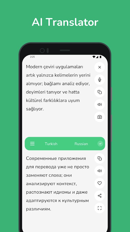 Благодаря нашему интуитивно понятному интерфейсу вы можете легко переводить слова, фразы и предложения с турецкого на русский в режиме реального времени. Наш продвинутый искусственный интеллект обеспечивает точные переводы, учитывая нюансы обоих языков.