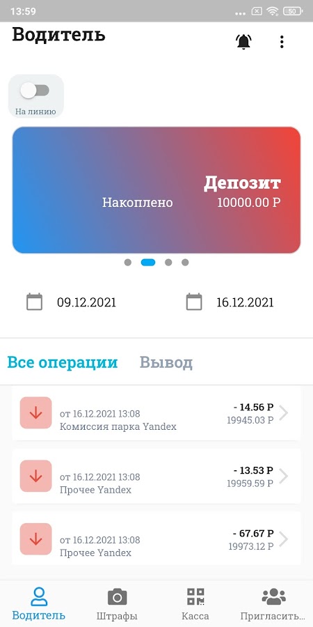 Личный кабинет водителя, информация о балансе, управление балансом, пополнение, снятие, информация по штрафам ПДД, состояние депозита.