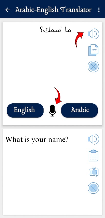 В переводе с арабского на английский и с английского на арабский вы можете переводить текст и голос.
