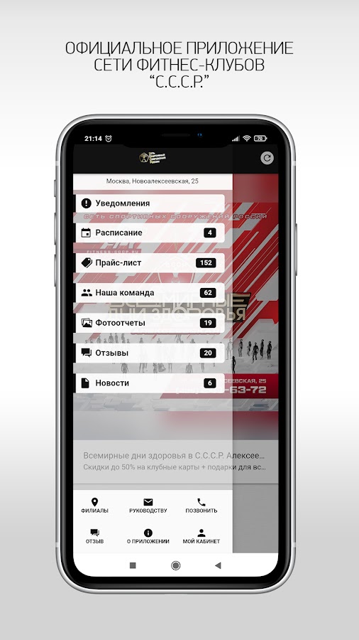Скачайте приложение С.С.С.Р. сеть фитнес клубов для Android бесплатно - последняя версия (4.0.7) уже доступна для установки на ваш телефон или планшет.