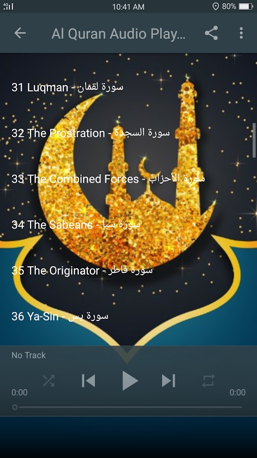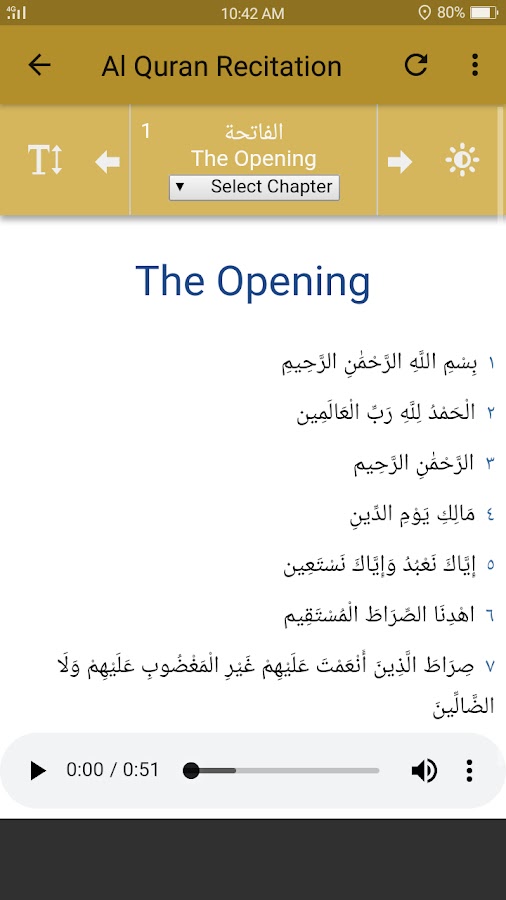 ☆ Аудио декламация каждой главы и стиха для облегчения мусульман во всем мире.