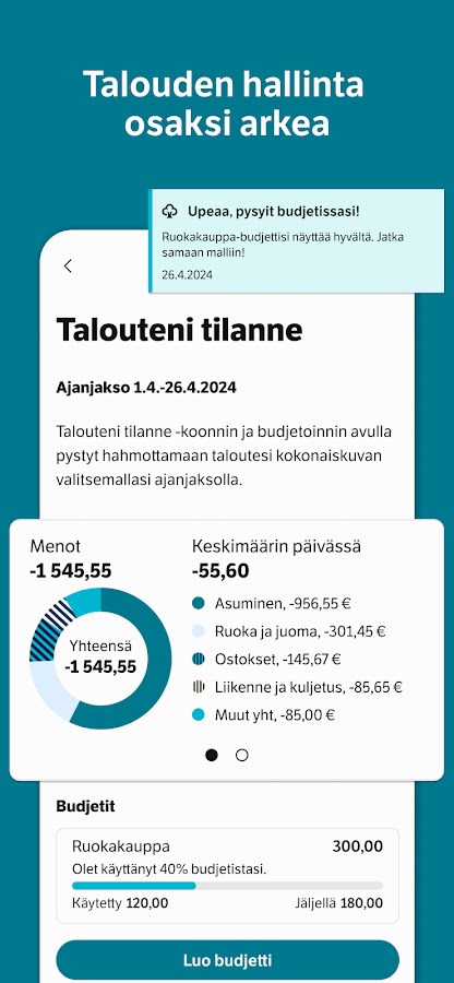Загрузите приложение и упростите решение повседневных финансовых вопросов! Наши клиенты, которые ежедневно используют Säästöpankki Mobile, хвалят приложение, о чем уже свидетельствует хороший рейтинг в магазине приложений.