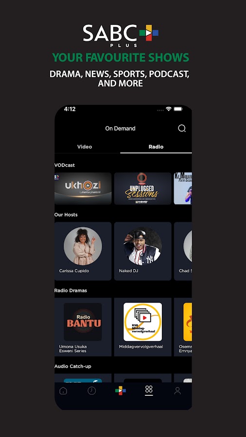 SABCPlus доставит вам самые любимые шоу, фильмы, новости, радио, спорт, сериалы и будничные драмы! Делая контент более доступным, siON с SABC 1 входит в SABC 2, Sisonke в SABC 3, а мы участвуем в игре с SABC Sport — у нас есть что-то для каждого! Забудьте о днях ожидания, чтобы увидеть драму – теперь вы можете следить за ней где угодно!