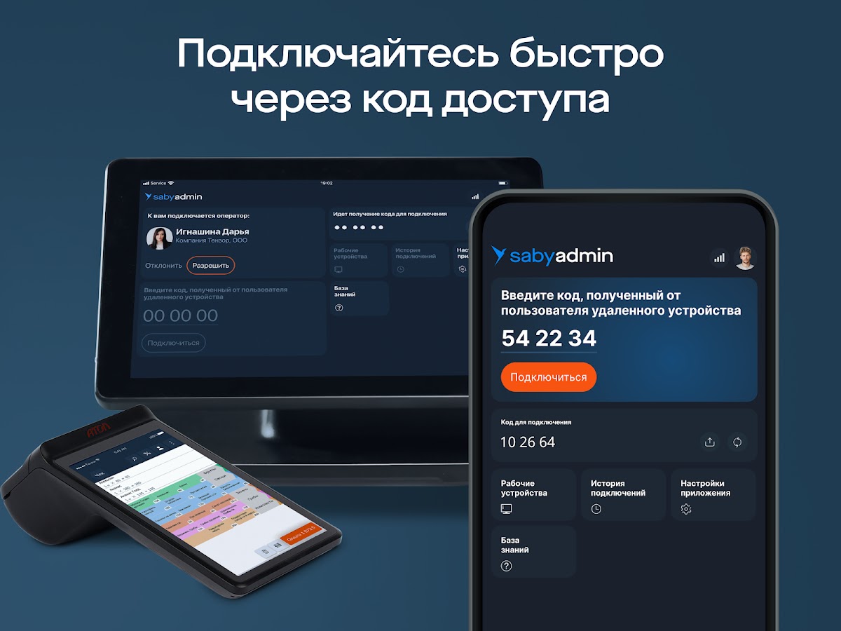 Saby Admin обеспечит безопасный удаленный доступ к компьютерам, смартфонам и онлайн-кассам через интернет.