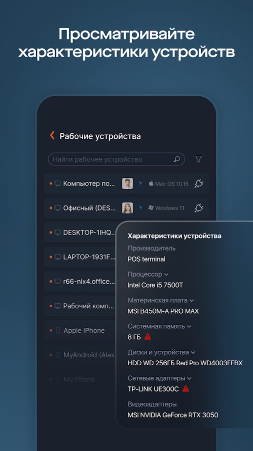 • подключаться к удаленным устройствам на Windows, Linux, macOS и Android и управлять ими;