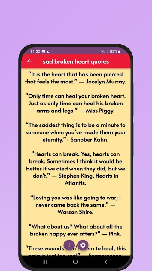 Кроме того, приложение «Цитаты о разбитом сердце» постоянно обновляется.
