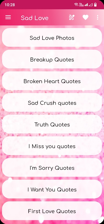 ☆ Категории в приложении Sad Love Quotes: